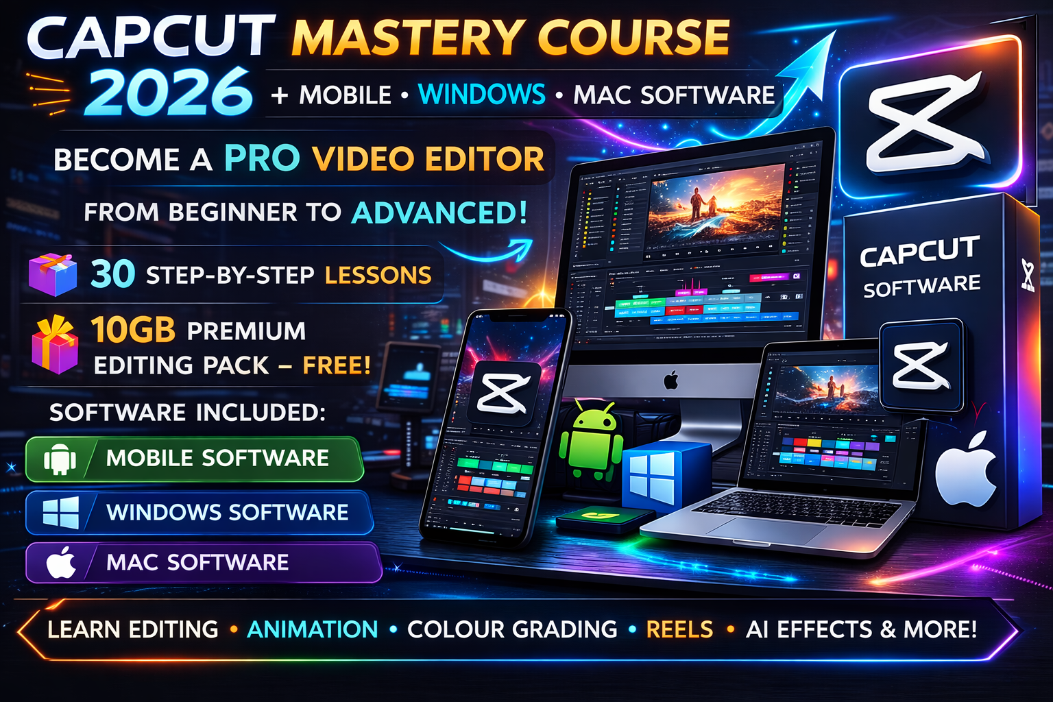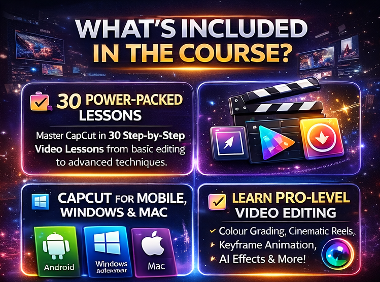 Learn professional video editing with CapCut from beginner to advanced with our CapCut Mastery Course 2026.